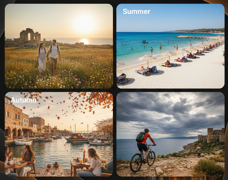 Tourism in Northern Cyprus remains active across all seasons. Summer attracts beachgoers, families, and resort visitors; spring and autumn appeal to hikers, cyclists, golfers, and wellness travelers; while winter draws long-stay guests seeking a mild climate and a relaxed Mediterranean lifestyle.